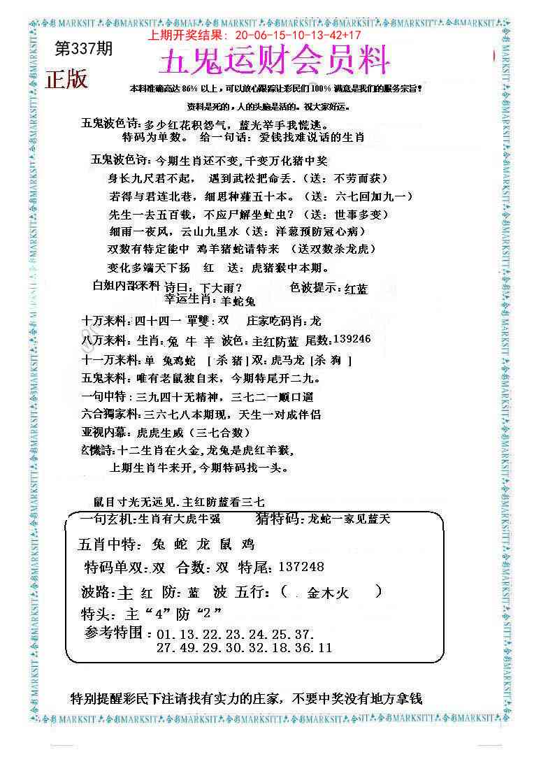 337期五鬼运财会员料[图]